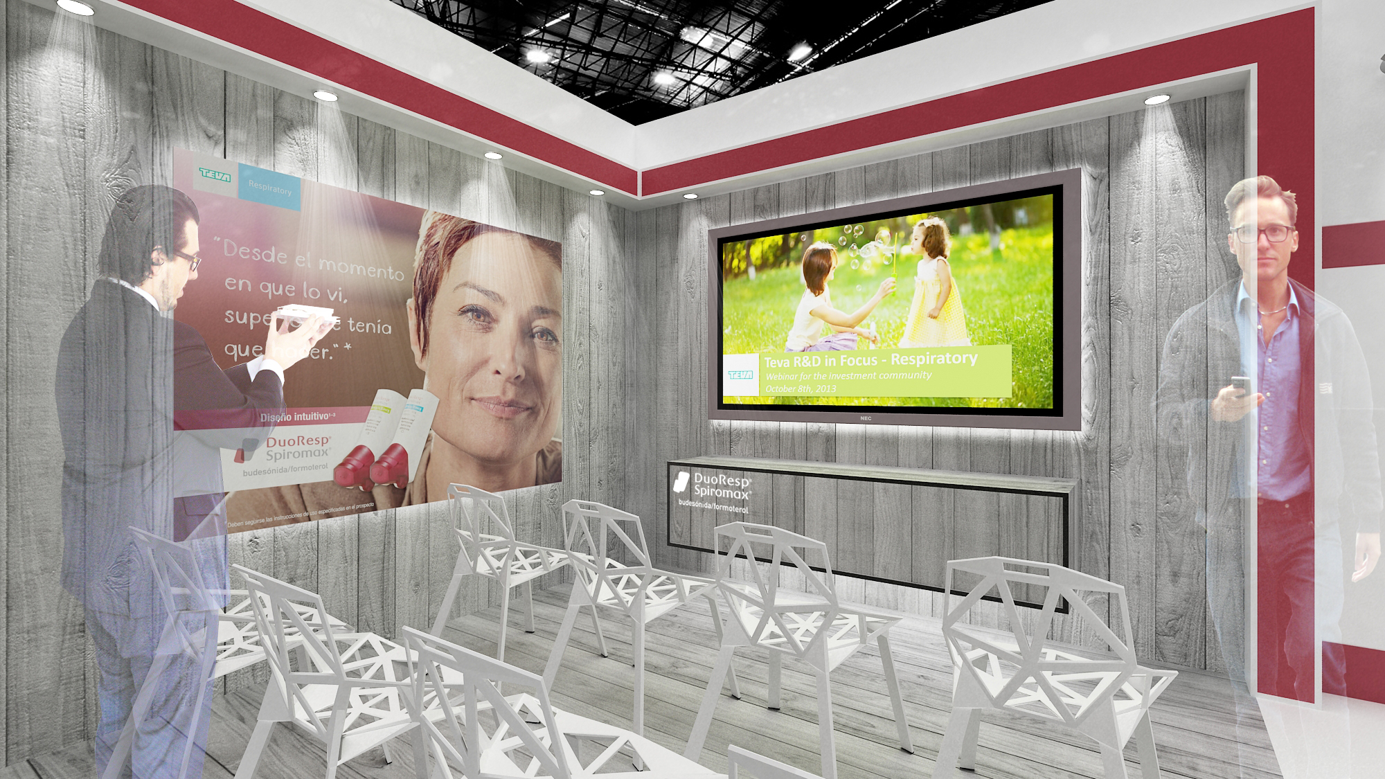 Diseño 3d para nuevo stand en el congreso 2016 de SEPAR. Estudio del espacio, funcionalidades y distribución de áreas.